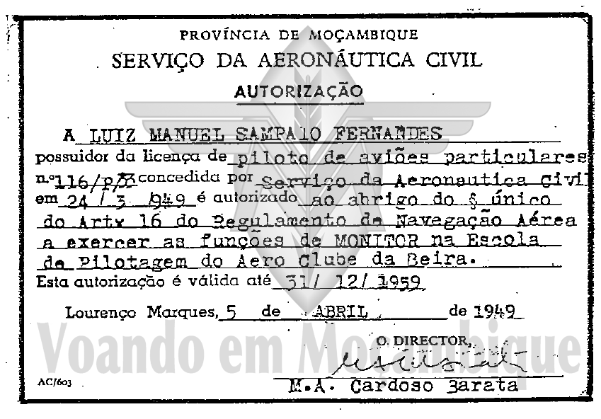 Ricardo Jorge Rogado Quintino FAV 301 - ACB FAV 301 - Aero Clube da Beira 01/08/1964