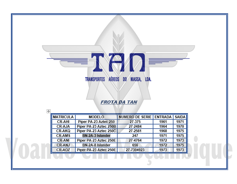FAV 311- (antigo destacamento da FAV 303AE) em António Enes dispondo de um Piper Family Cruiser (CR-AEN).