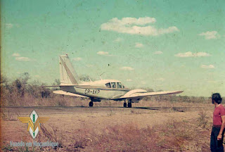 Inhamacala - Setembro de 1965 - Piloto Moura - ao fundo 3 aviões da frota TAM- Comanche, Cessnas 180 e 185 . Fotos e legendas do Cte. Primavera.